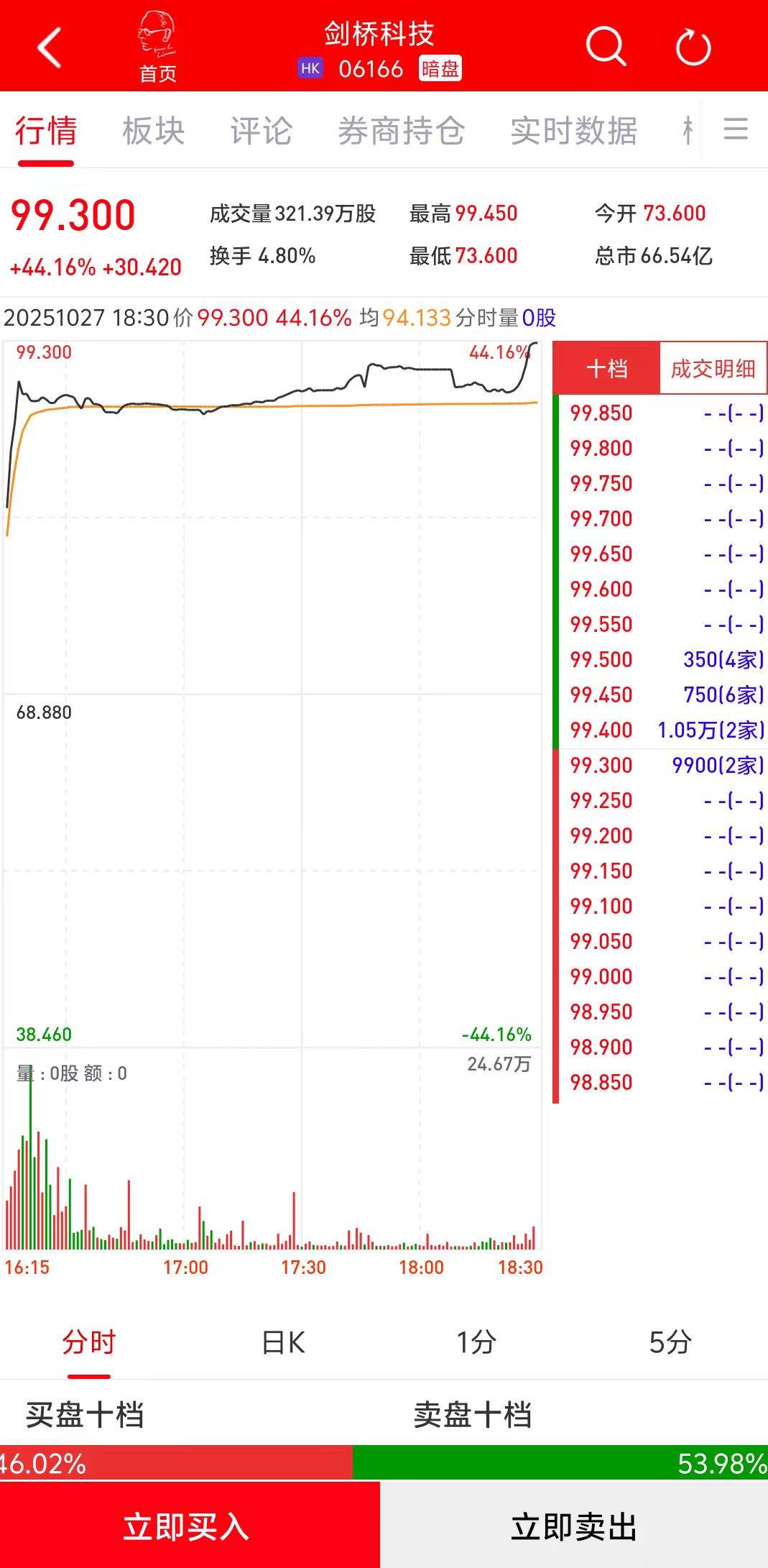 剑桥科技(603083)(06166)将于10月28日(周二)在香港挂牌。截至收盘,利弗莫尔证券暗盘交易显示报价99.3港元,较招股价68.88港元上涨44.16%,每手50股,不计手续费,每手赚1521港元。